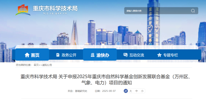关于申报2025年重庆市自然科学基金创新发展联合基金(万州区、气