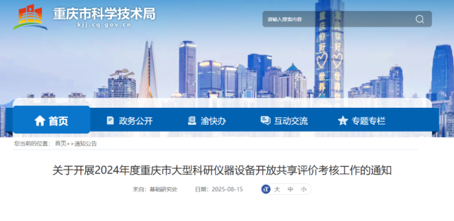 关于开展2024年度重庆市大型科研仪器设备开放共享评价考核工作的